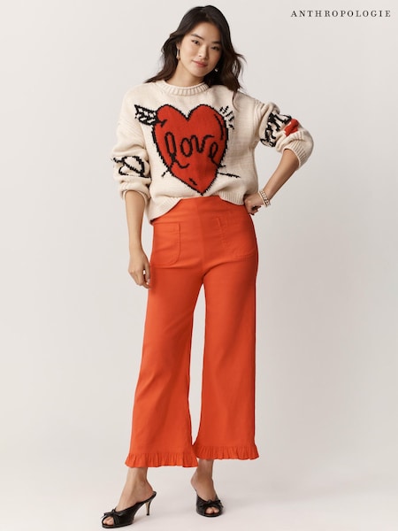 Anthropologie Maeve The Colette Ruffle-Hem Crop Wide-Leg Trousers