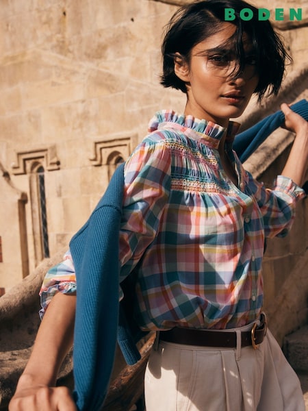 Love & Roses White Ecru Crew Neck Lace Yoke Long Sleeve Blouse