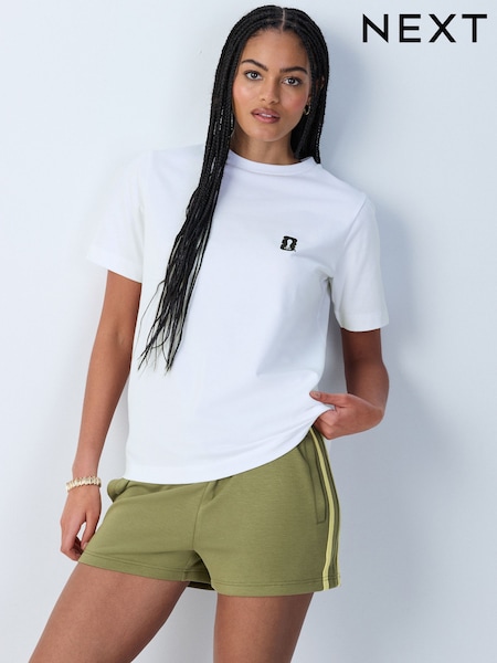 self. Ecru Fitted Rib T-Shirt
