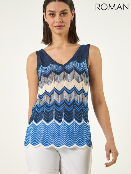 Roman Blue Wave Chevron Knitted Vest