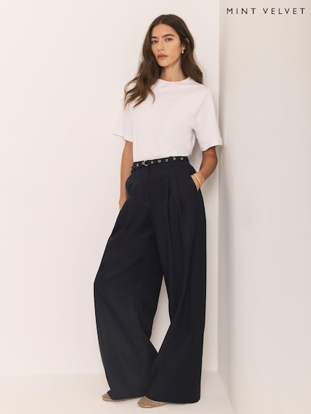 Mint Velvet Blue Belt Wide Leg Trousers