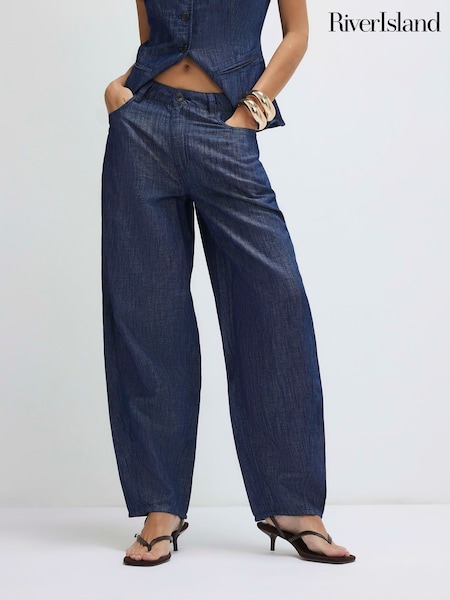 River Island Blue Premium Denim Barrel contains Linen Trousers