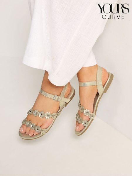 Yours Curve Gold Extra Wide Fit Ditsy Floral Sandals