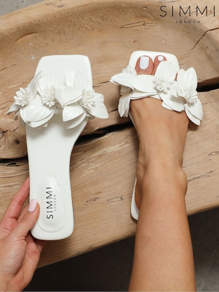 Simmi London White Gilly Flower Detail Slip-On Flat Sandals