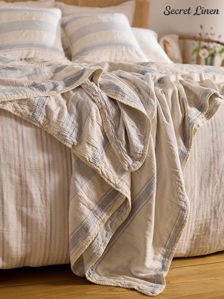 Secret Linen Store Benji Stripe Quilted Throw