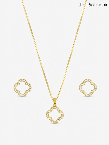 Jon Richard Tone Cubic Zirconia Open Clover Set Gift Box