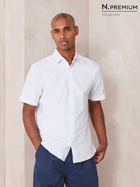 (83)Weiße Leinenhemden gehören in jeden Kleiderschrank. Mit einem Oxford-Hemd, einem Hemd mit Aufdruck oder einem Hemd mit Grandad-Kragen in modischer, schmaler Passform oder in normaler Passform bringen Sie frischen Wind in Ihre Garderobe. Tragen Sie dazu eine elegante Hose oder eine Chinohose für einen entspannten Urlaubslook.