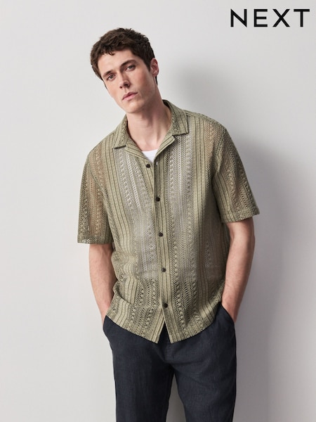 Khakigrün - Gehäkeltes Kurzarmhemd mit Streifen