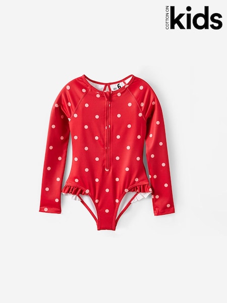 Cherries/Tea Party Pink - Cotton On Lucy Long Sleeve Ruffle Back Swimsuit