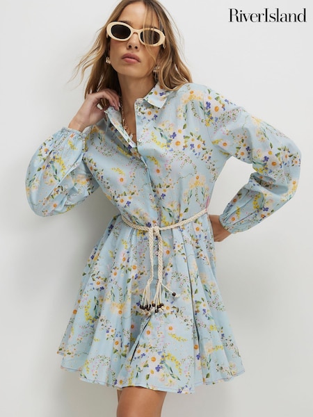 River Island Floral Print Belted Mini Shirt Dress