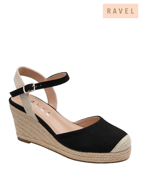 Ravel Black Espadrille Wedge Closed Toe Strap Shoes