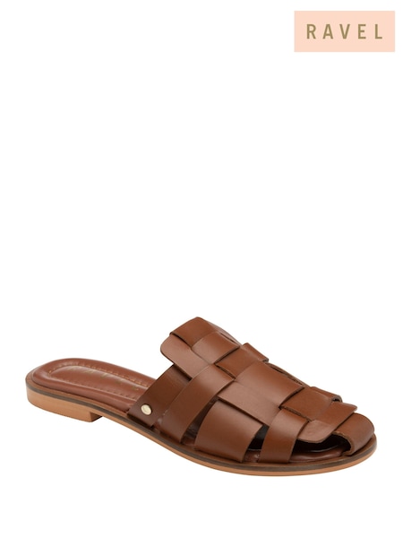Ravel Brown Cross Over Leather Mule Sandals