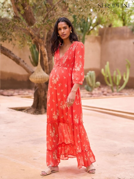 Seraphine Orange Floral Maternity and Nursing Maxi Dress