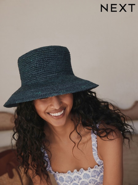 Navy Blue Straw Bucket Hat