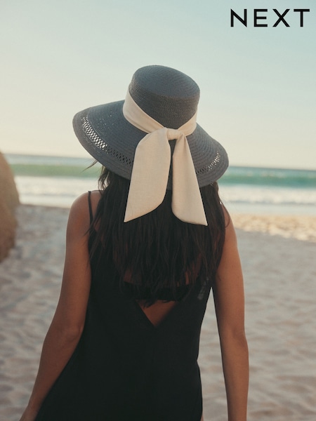 Navy Blue Straw Look Dropped Brim Hat