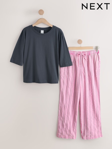 Charcoal Grey/Pink Stripe Short Sleeve Pyjamas