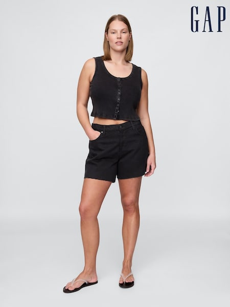 Gap Black 11 Inch Mid Rise Longline Denim Shorts