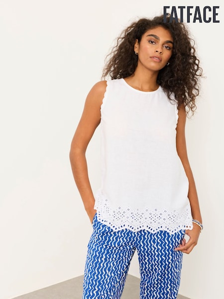 Multi Pattern Sleeveless Shirred Broderie Cami