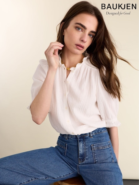 Baukjen White Karenina Cotton Broderie Detail Blouse
