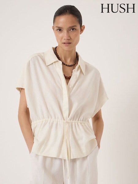 Hush White Mirai Linen Short Sleeve Shirt