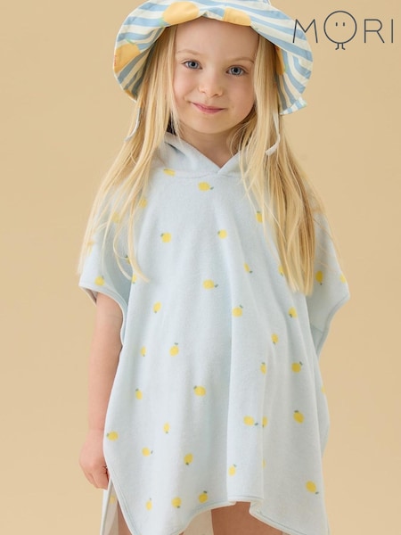 Bleu imprimé palmier - Serviette de plage/piscine réversible à capuche KIDLY by MORI