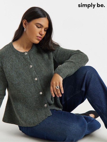 Grigio - Cardigan lavorato a maglia Girocollo in misto lana merino premium Anthology By JD Williams