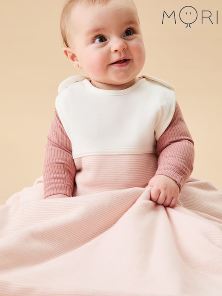 MORI Pink Ribbed 2.5 Tog Front Zip Sleeping Bag