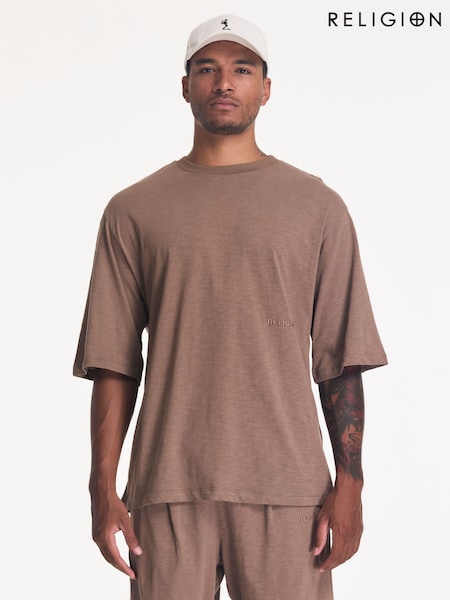 Religion Brown Oversized Heavy Block 100% Cotton T-Shirt