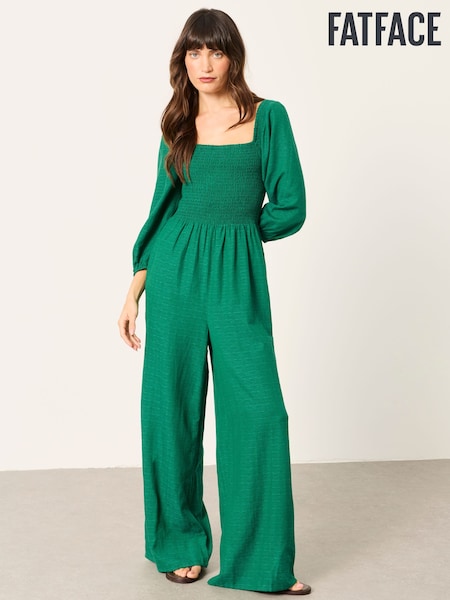 FatFace Adele Green Petite Embroidered Jumpsuit