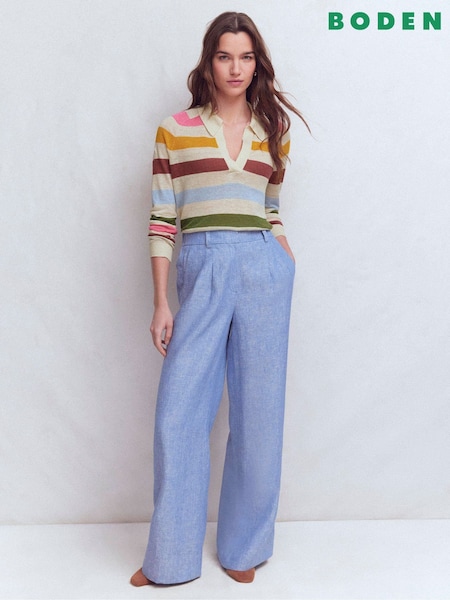Boden Blue Agnes Collar Linen Cardigan