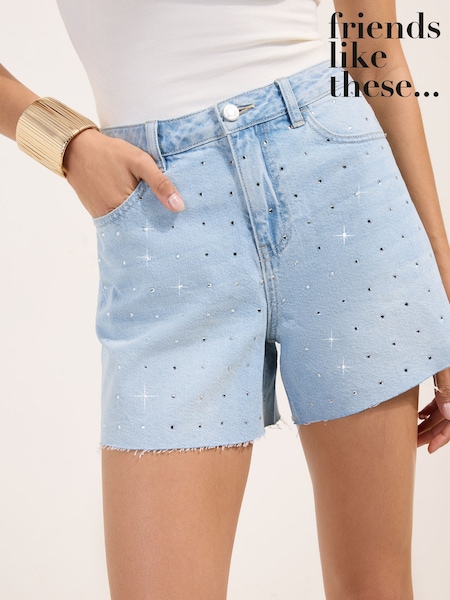 Friends Like These Bleach Wash Diamante A Line Denim Shorts