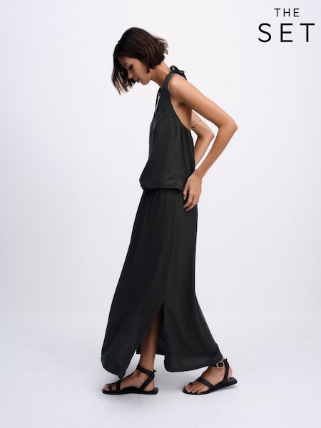 The Set White/Black 2 Pack Pull On Maxi Skirts with Linen