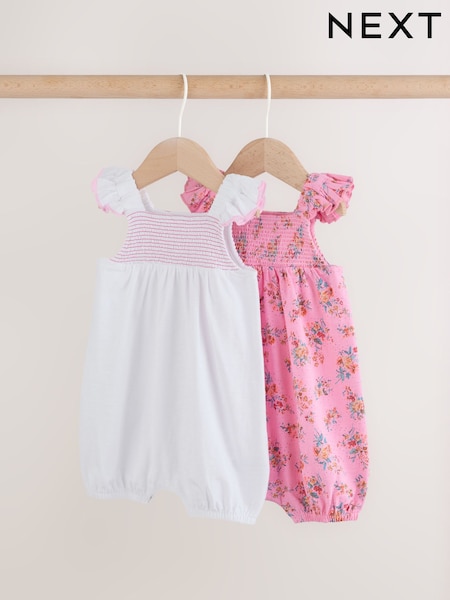 Pink Floral Frill Shoulder Baby Jersey Rompers 2 Pack
