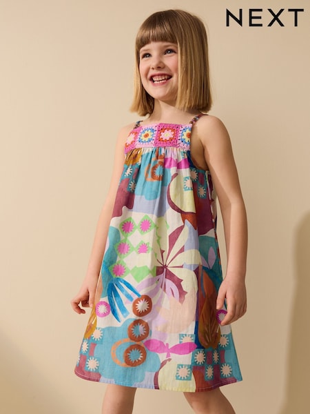 Multi Blue Strappy Crochet Dress (3-16yrs)