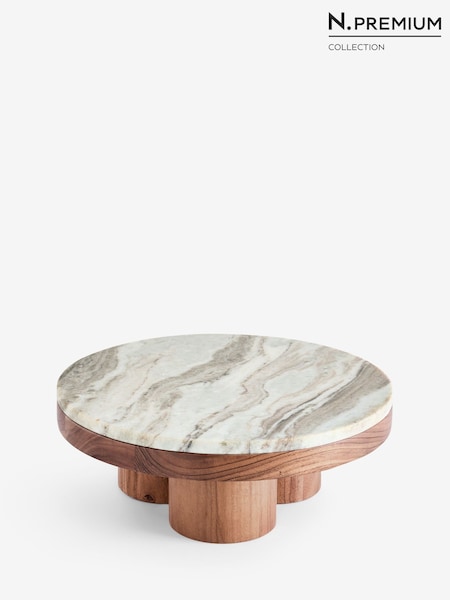 Natural N. Premium Marble and Wood Pedestal Serving Board