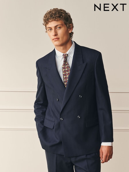 Navy Archive Wool Blend Herringbone Texture Suit Jacket
