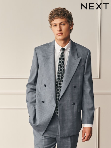 Light Grey Archive Prince Of Wales Wool Blend Double Breasted Check Suit Jacket