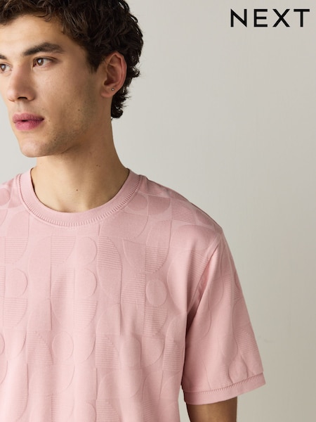 Pink Single Relaxed Fit Ottoman Texture T-Shirt