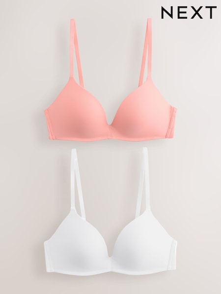 Coral/White A-E Push Up Padded Non Wired Smoothing Bras 2 Pack