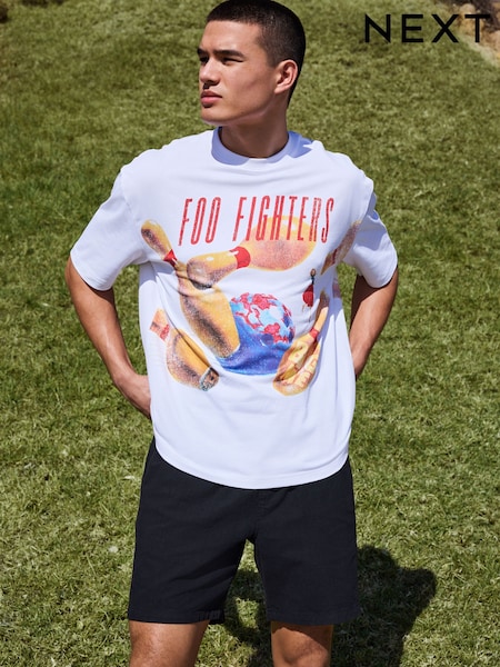白色Foo Fighters - 宽松版型 - 乐队图案印花 T 恤