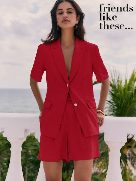 红色 - Friends Like These 高级定制亚麻布混纺短袖西装夹克