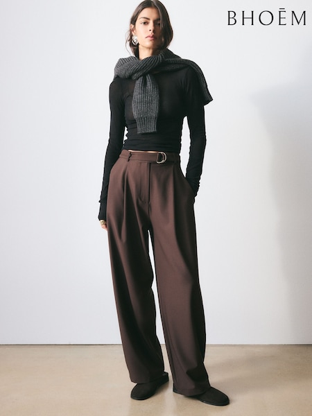 Παντελόνι BHOEM με ζώνη και κωνικό τελείωμα, σε σοκολατί καφέ χρώμα