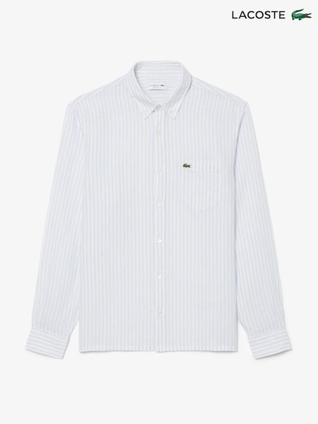Μπλε - Πουκάμισο Lacoste από λινό με ρίγες και κανονική εφαρμογή