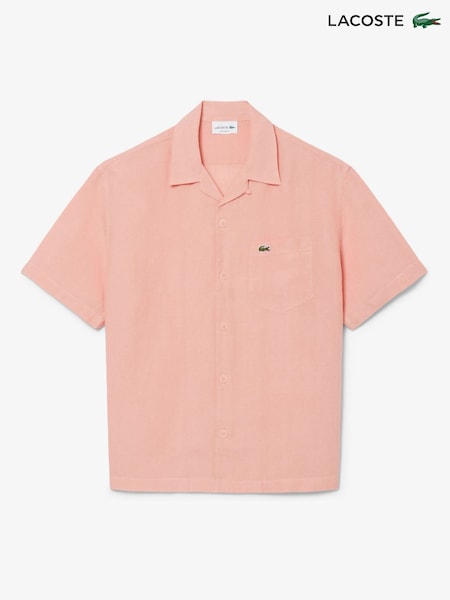 Ροζ - Πουκάμισο Lacoste από Κοντομάνικο Λινό με χαλαρή εφαρμογή