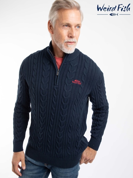 Weird Fish Bexley Full Zip Cable Knit Jumper