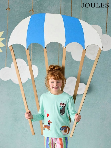 Πράσινο μέντας - Κοριτσίστικο τοπ με απλικέ Ava και μακριά μανίκια Joules για κορίτσια