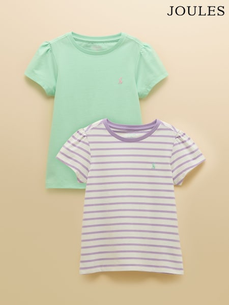 Μωβ & Πράσινο - Joules Girls' Let's Go Short Sleeve T-Shirts 2 Pack