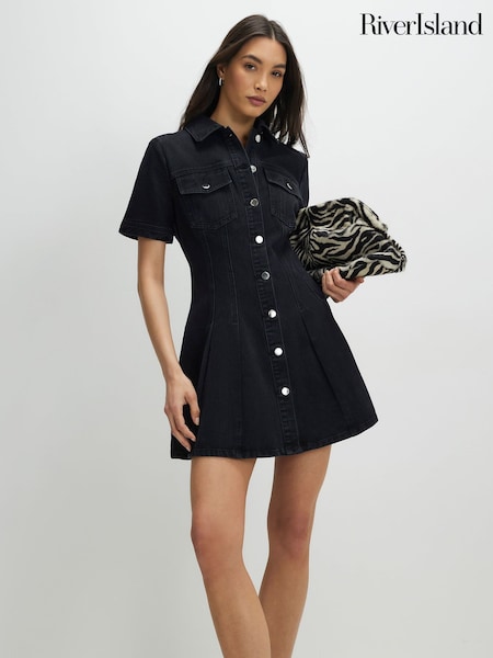 Μίνι φόρεμα River Island Κοντομάνικο Με κουμπιά Πλισέ