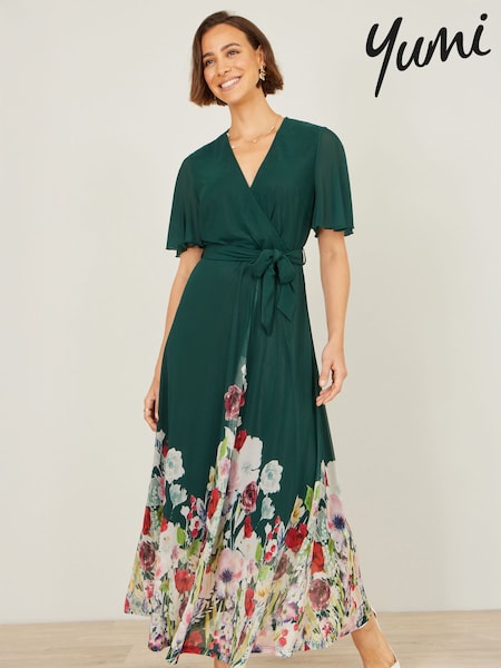 Πράσινο - Φόρεμα Yumi Mesh με μίντι κρουαζέ σχέδιο και φλοράλ τελείωμα