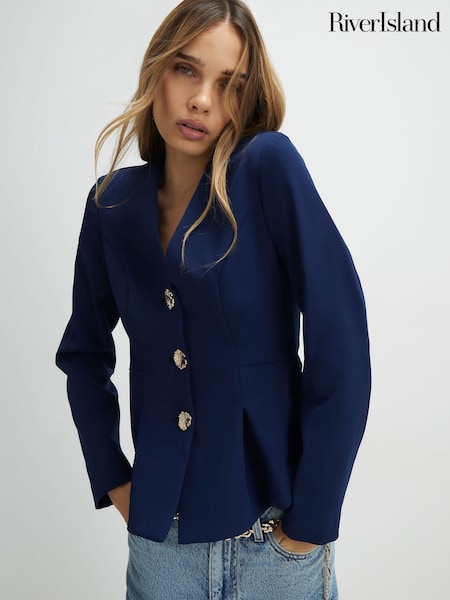 River Island Long Sleeve Button Front Peplum Jacket